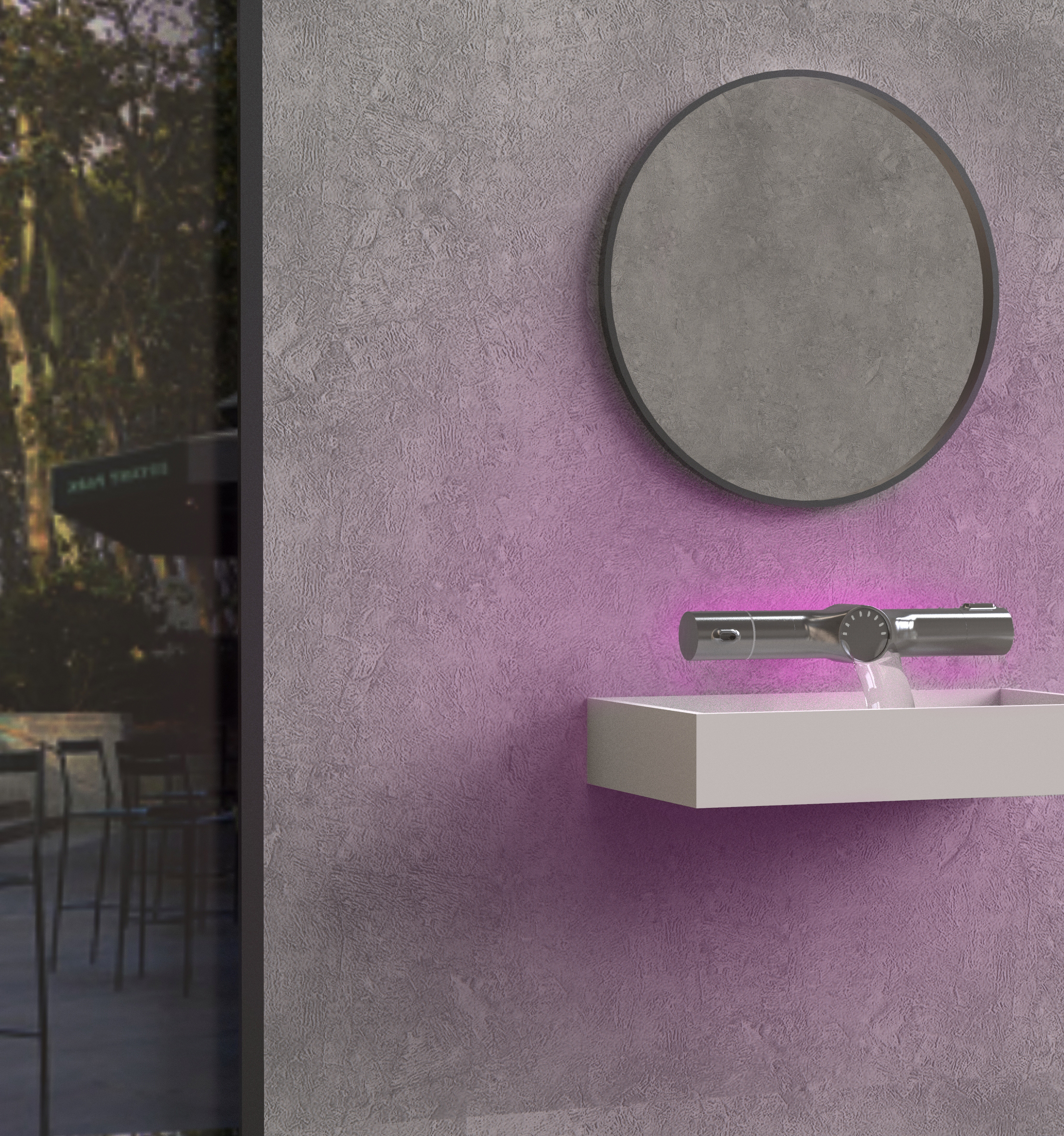 Second prize: "Faucepy" by Valentina Masarella (Argentina, University of Buenos Aires). A faucet that integrates aromatherapy and light therapy for both public and domestic bathrooms.