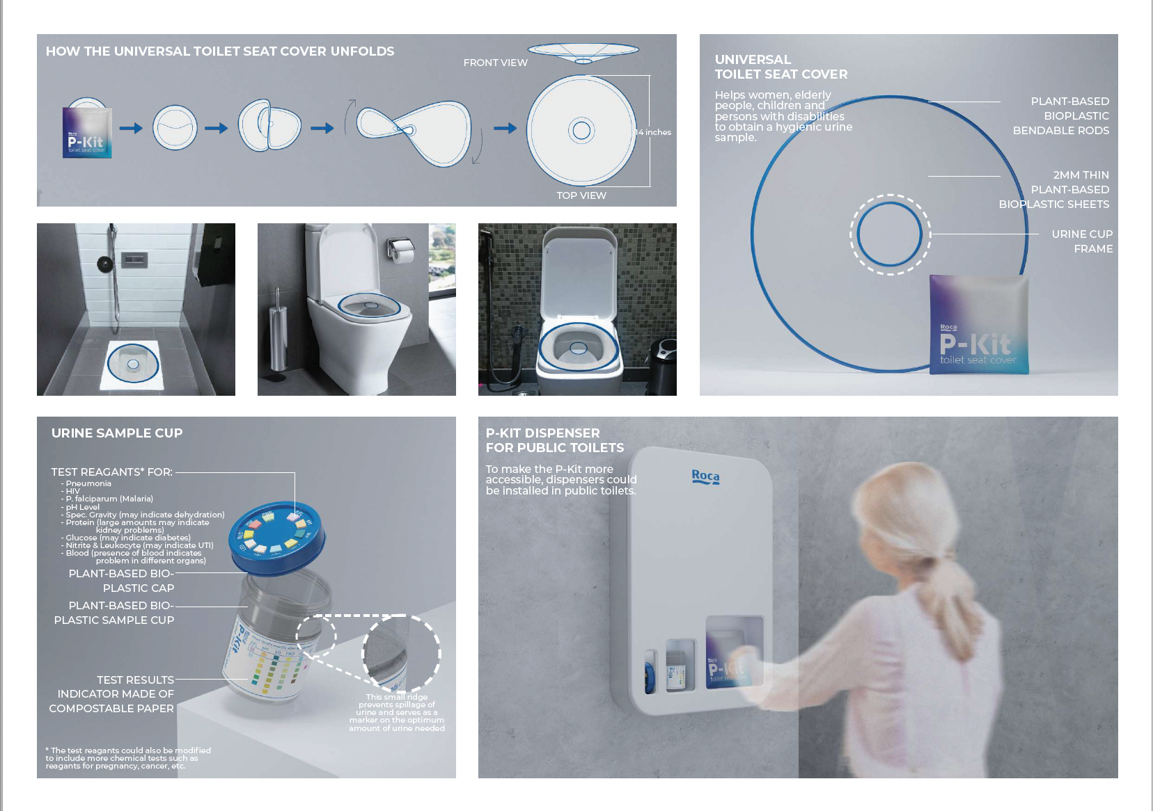 First prize: "P-Kit" by Andre Judiel Parabas (Philippines, Design student at the University of the Philippines - Diliman). Low-cost, biodegradable urine testing kit for use in the bathroom space itself. It can detect symptoms of diseases such as diabetes, urinary infections, urinary tract infections, HIV, malaria or pneumonia.